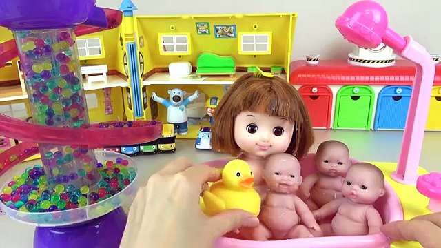 Play doh ball baby doll bath time learn colors glitter slime & tayo bus garage surprise eggs toys.